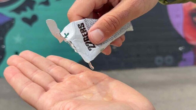 El líquido viene en un formato pequeño, tipo gel, muy fácil de llevar y que prácticamente no molesta nada, lo puedes meter en el cinturón sin darte cuenta o, en caso de ser trailrunner, llevarlo en la mochila sin ocupar demasiado espacio.