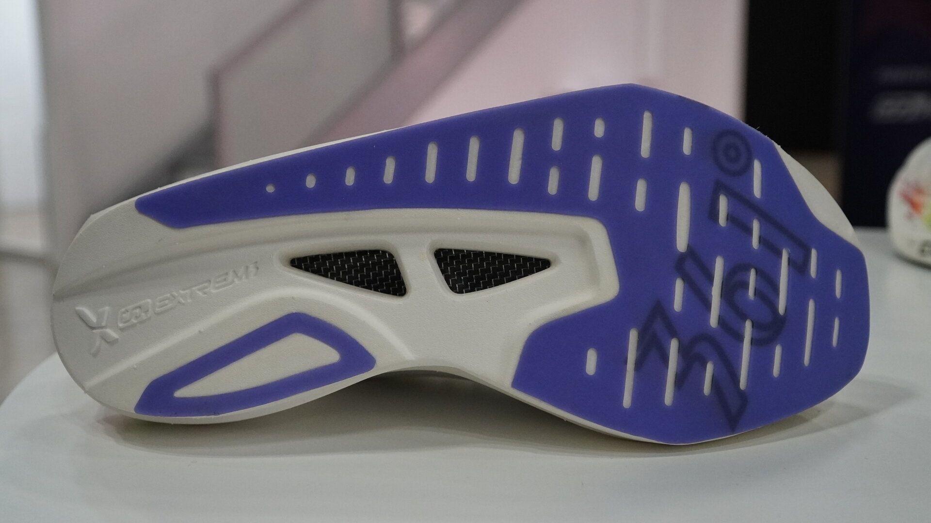 En la mediasuela encontramos el compuesto CQT EXTREME (TPEE) combinado con una placa de carbono hueca QUIKBONE, visible a través de una ventana lateral. Todo para aportar el máximo de reactividad y retorno de energía a la zapatilla.
