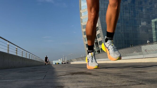 Las formas de la zapatilla promueven precisamente que, en distancias de cierto volumen como un medio o un maratón completo, la zapatilla contribuya a darnos esa seguridad cuando las piernas más flaquean.