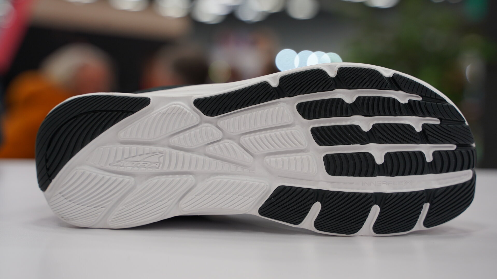La suela si no estamos equivocados, es exactamente la misma que teníamos en la Rivera 3. Una suela muy de Altra con una clara distribución del caucho y la goma expuesta. Además, con la tecnología ya conocida Innerflex que lo que busca precisamente es permitir flexión en la zona del metatarso y una transición lo más natural posible.