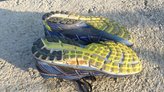 La verdad es que la suela de estas Brooks Adrenaline GTS 17, queda muy bien diferenciada entre dos compuestos, el amarillo y el negro ¡Fácil verdad! Al tacto, ya se denota una diferencia de dureza. El compuesto negro, situado en el talón, es bastante más duro que el amarillo, situado en el mediopié e antepié. Empezaremos por el negro, el cual la gente de Brooks denomina HPR, al fin y al cabo, es un material más resistente a la abrasión. Es por eso, que lo han implantado en la zona del talón, para esa gente que impacte directamente con el talón, una gran mayoría de nosotros. Por otro lado, el color amarillo, es un blown rubber (caucho insuflado) que hará las funciones de agarre y propulsión, es por eso que es algo más blando. Después de 6 semanas con ellas y más de 200 km, debemos decir que la parte en amarillo, sobretodo en la puntera, ha sufrido bastante desgaste, algo más de lo esperado en un ¼ de su teórica vida. Por último, nos gustaría comentar el FLEXTRA, es una zona algo más densa de caucho, especialmente situada para evitar la pronación del pie, es decir, afecta directamente a la estabilidad de estas Brooks Adrenaline GTS 17, no solo eso, sino que también ayuda a la flexión natural del pie.