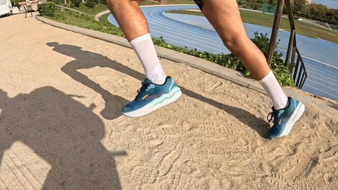 Al principio puedes notar cierta rigidez. La Ghost Max 2 juega con el GlideRoll Rocker, una tecnología que utiliza Brooks y que básicamente lo que busca es estimular una pisada eficiente y controlada gracias a las geometrías tanto del talón como de la puntera.