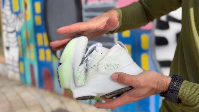 En la mediasuela encontramos el DNA Tuned, aunque con una distribución diferente. Vemos ese juego de celdas con distintas densidades: más pequeñas en ciertas zonas para aportar mayor suavidad, y más estructuradas en el talón para ofrecer un aterrizaje más seguro.