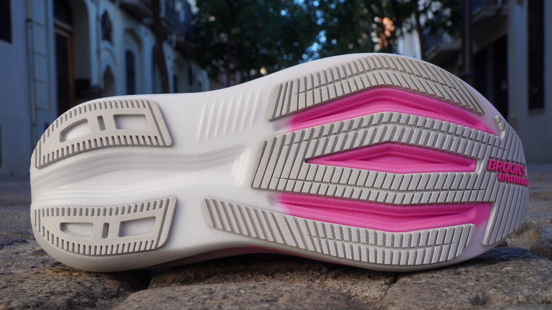 Brooks ha modificado ligeramente las geometrías de la suela haciendo un poco menos profundos los surcos, pero mantiene el caucho generosamente en las zonas donde lo necesita. De este modo se siente una buena adherencia incluso en mojado. Nosotros salimos a rodar por las calles de San Antonio (Texas) en día de lluvia y la zapatilla respondió estupendamente y no sentimos inseguridad en los pies.