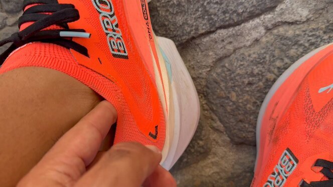La zona trasera cuenta con una pieza interior plástica realmente contundente que limita muchísimo el movimiento. Es aquí uno de los puntos donde creemos que Brooks podría haber reducido algo de material para mirar de reducir sensiblemente el peso.