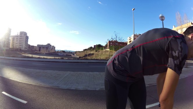 A veces las primeras sensaciones en seco varían respecto a las pruebas realizadas en marcha, sinceramente esta Joma Olimpia ha cumplido con creces todo lo que hemos ido explicando hasta ahora. Por el tiempo loco que estamos teniendo últimamente, hemos podido probarla al 100% en todas sus versiones, como única capa, con chaleco y manguitos, solamente con chaleco, como primera capa más uno cortavientos o pequeña térmica…etc. la verdad es una prenda bastante polivalente a la hora de hacer lo que más nos gusta, correr. Quizás el apartado de secado rápido o de transpirabilidad no sea su fuerte, queda bastante empapada por la parte delantera y posterior, con lo que al no expulsar suficientemente el sudor podamos llegar a sentirnos incómodos con ella. En cambio el ajuste de esta Joma Olimpia no ha variado en ningún momento, queda muy bien ceñida al cuerpo desde el primer momento, sin que se mueva en absoluto, es verdad que al no tener una buena transpirabilidad, a medida que queda empapada de sudor más ceñida queda y puede llegar a ser algo incómoda. Sin embargo no hemos notado para nada ningún tipo de molestia en cuanto a rozadura, es normal y bastante frecuente que según el tipo de material utilizado llegue a crear unas pequeñas abrasiones en la parte de los pezones.Otra parte que puede llegar a sufrir este tipo de rozaduras es en la axila, ya que el movimiento continuo a la hora de correr puede llegar a ser otra zona propensa a ello, en esta Joma Olimpia no tendremos este tipo de problemas. Protege algo del aire, pero no mucho, no llegas a sentir excesivo frio, pero si da el caso que la camiseta Joma Olimpia esta empapada de sudor, podríamos llegar a tenerlo. En cuanto a la parte inferior de las axilas transpira muy bien, es aquí donde encontramos el tejido tipo rejilla que hace muy bien su función. Durante las semanas que hemos podido disfrutar de esta Joma Olimpia, no hemos tenido la sensación de malos olores, es raro porque al retener más el sudor que otras camisetas, podría llegar a oler mal, pero en este aspecto muy bien.