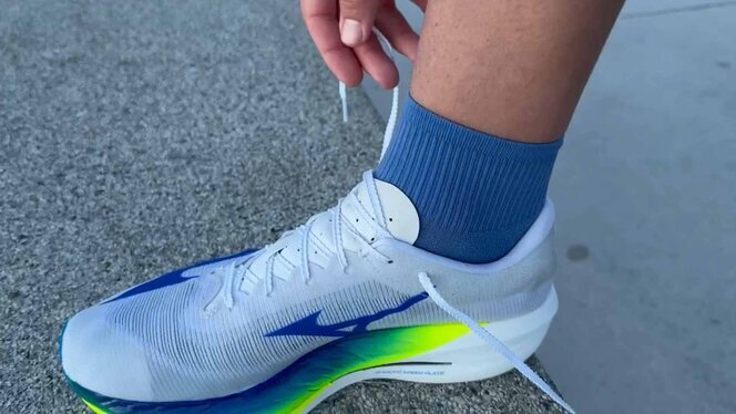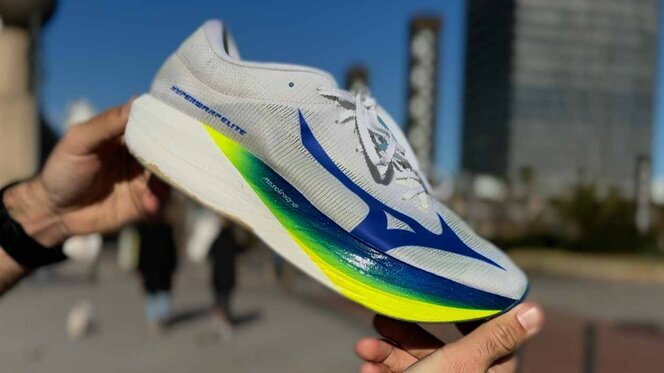 La Mizuno Hyperwarp desprende adrenalina solo con ponérselas. El ajuste es ceñidito (ojo pies anchos), su espuma se siente protegida pero con un tacto muy particular, la suela es de esas que suena cuando impactas el asfalto..