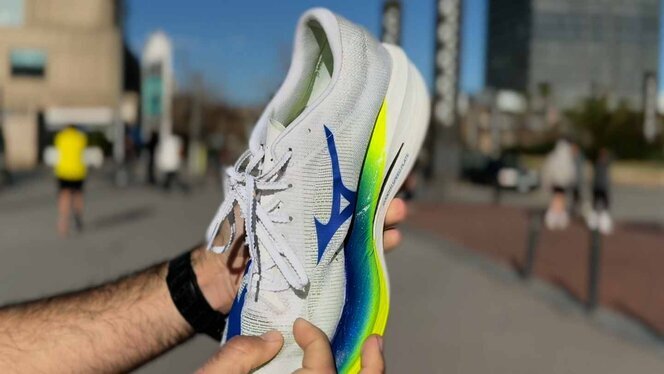 Su geometría no es extremadamente pronunciada, lo cual, en distancias algo más largas, asegura mejor la transición y no genera ese baile de espumas que algunas veces, por el propio cansancio, nos ha jugado alguna que otra mala pasada. Te aseguramos que zapatilla no tiene nada que ver con lo que Mizuno ha tenido en los últimos años con la Rebellion Pro.