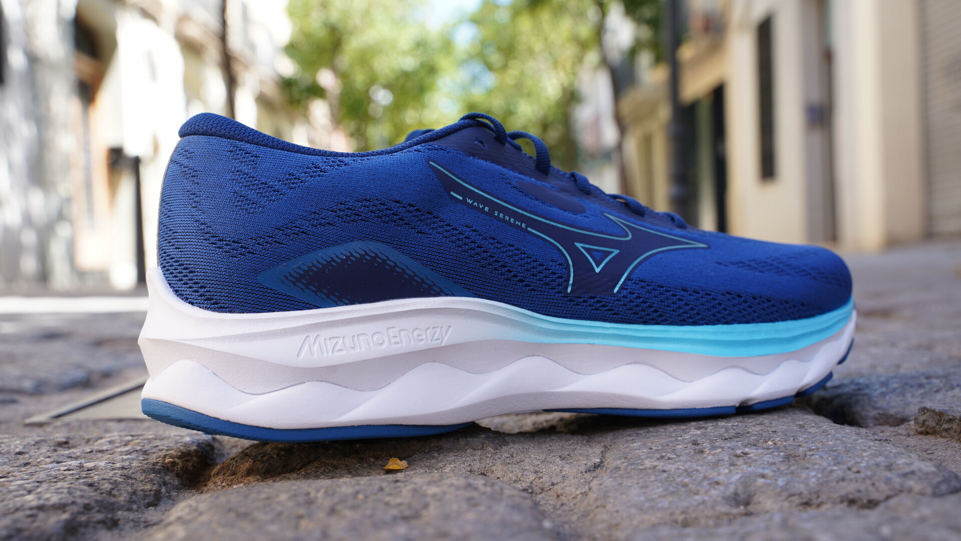 La Wave Serene cuenta con una mediasuela de Mizuno Enerzy, la espuma más utilizada por la marca nipona entre sus modelos de entrenamiento. Además, vemos como la Wave que cruza toda la mediasuela, se va adaptando y moldeando a medida que el pie va realizando la transición desde el talón hasta la puntera. De esta manera, se consigue amortiguar correctamente, pero al mismo tiempo, dar la estabilidad necesaria al correr.