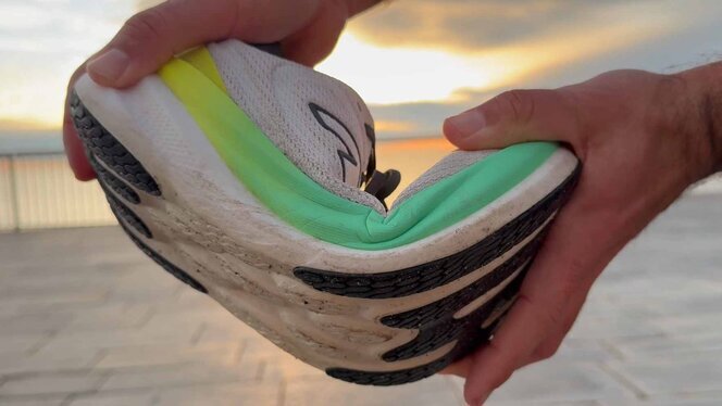 3 - A diferencia del anterior Fresh Foam X, la elasticidad del nuevo compuesto evita el quedarse "hundido" al impactar y al mismo tiempo devolver mayor retorno energético.