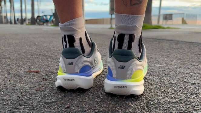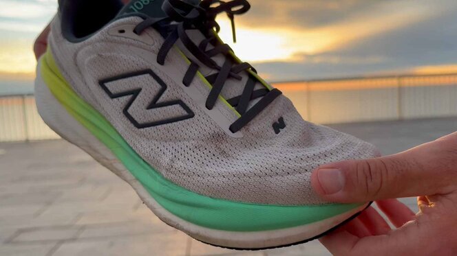 El nuevo Infinion va más allá de lo estético. Se trata de un material o espuma divertido y más resiliente que el de antes. El Fresh Foam X de la v14 podía quedarse chafado de forma prematura (sobre todo en corredores de pesos más altos) y su “flow” perjudicado de forma directa.
