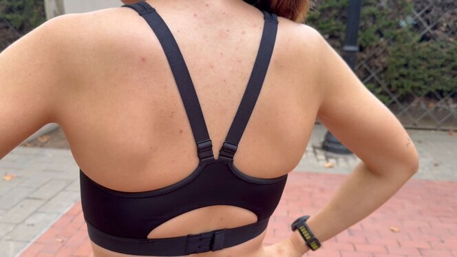 Durante las pruebas, notamos que recoge mucho y transmite seguridad. La zona de la axila puede sentirse algo ceñida, aunque ajustando los tirantes hacia abajo se corrige. En general, la sensación final es de compresión y sujeción total. Como hemos comentado en un inicio, el top gana comodidad a medida que vamos corriendo, por lo que de entrada puede parecer algo incómodo pero una vez estamos en movimiento justo al contrario.