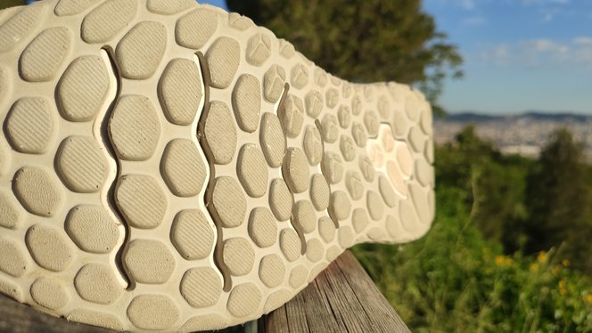 La suela es la responsable de una base tan amplia. Una suela que gana en flexión gracias a los 4 surcos, prácticamente invisibles, que tenemos en la parte delantera. En ese momento de ir a un ritmo más elevado y sentir mayor libertad en el momento del despegue, poco tiene que ver si recordamos el antiguo “tanque” de las More v1.