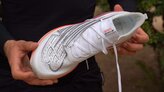 Si coges la zapatilla con la mano y separas la suela en canal, verás que esta cede fácilmente. La idea es que al impactar contra el suelo, esta se chafe coincidiendo por donde tenemos este súper hueco y allí se genere una gran cantidad de energía para ayudarnos a acelerar todo el proceso de transición.