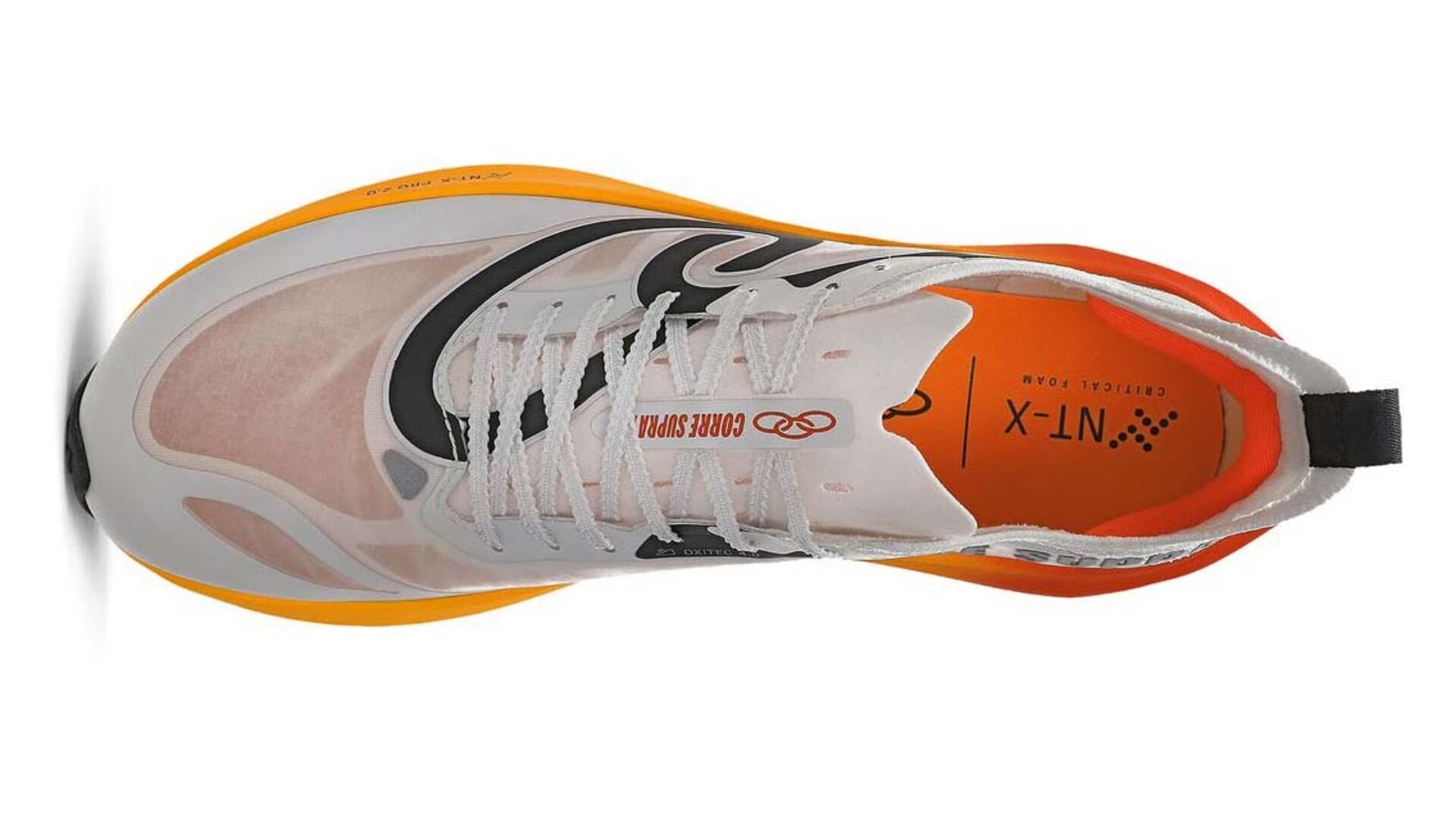 Si nos centramos en su mediasuela, la Corre Supra incorpora una espuma Peba completamente nueva que probablemente modificará de forma importante (respecto la 1) la experiencia en carrera. El nombre que la marca le da es NT-X Pro 2.0 y por lo que vemos en su página web, se trata de un nuevo material desarrollado mediante la inyección de gas nitrógeno para generar esa sensación de reactividad y ligereza tan característica de las zapatillas más rápidas del mundo.