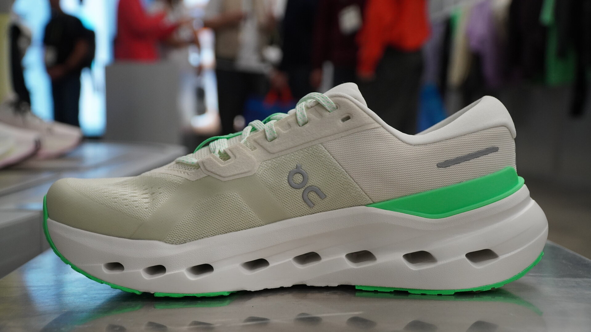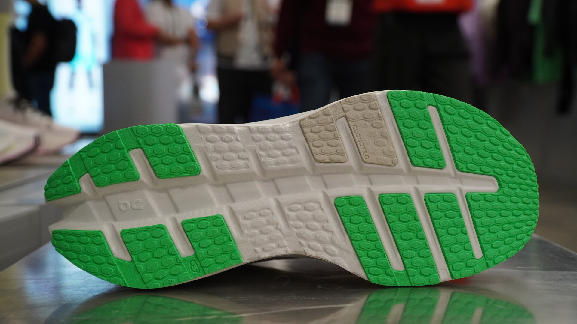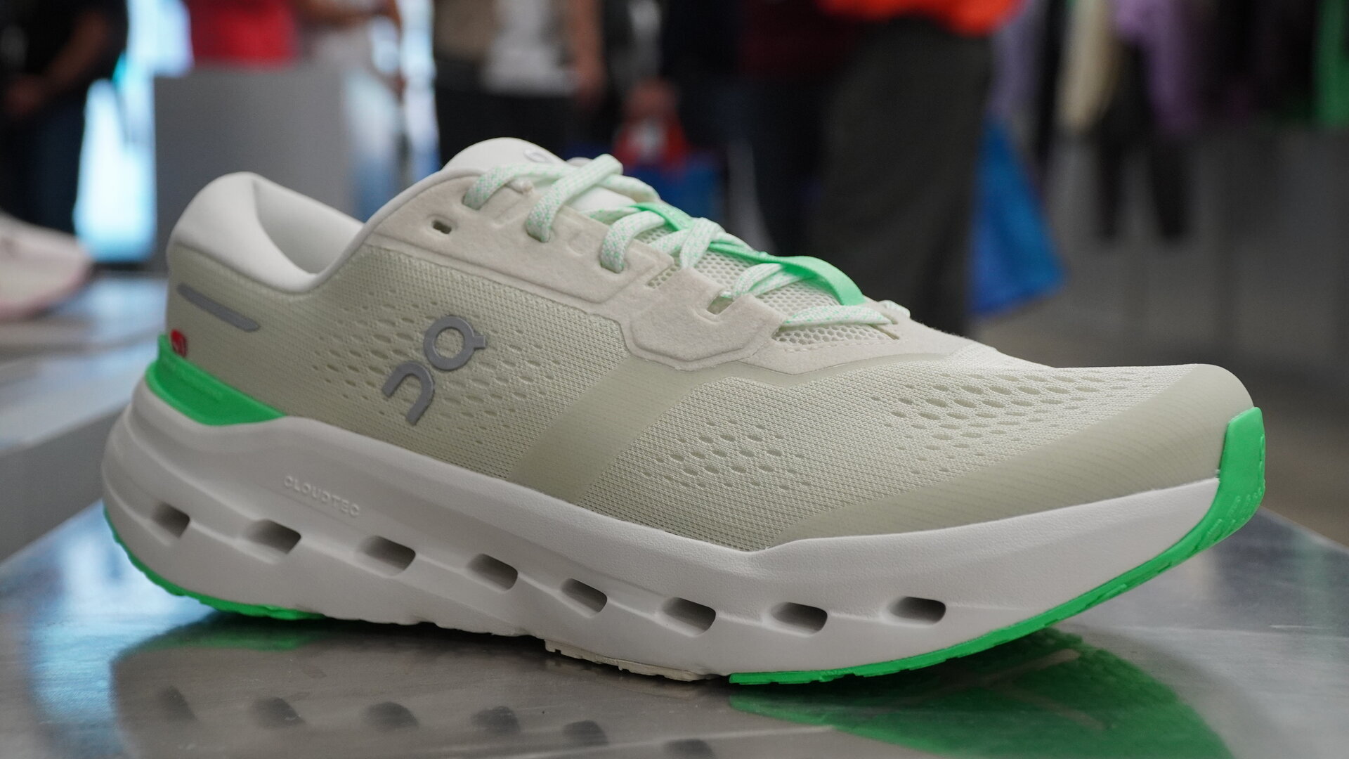 La suela gana 1 mm de grosor respecto a la Cloudrunner 2 y mantiene una distribución clásica del caucho, sin presencia de placa. El ligero biselado del talón favorece una entrada más estable, ya que al comprimirse el material ayuda a centrar el apoyo y aporta sensación de control.