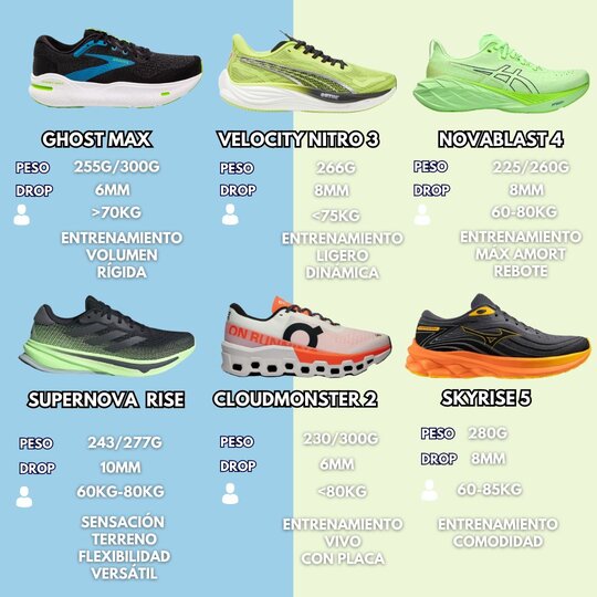 Un modelo comparable por ejemplo con Cumulus de Asics o Pegasus de Nike. Sin ser la más amortiguada de la marca pero con protección más que suficiente para que corredores de peso ligero y peso intermedio puedan entrenar con ella diariamente con comodidad y protección.