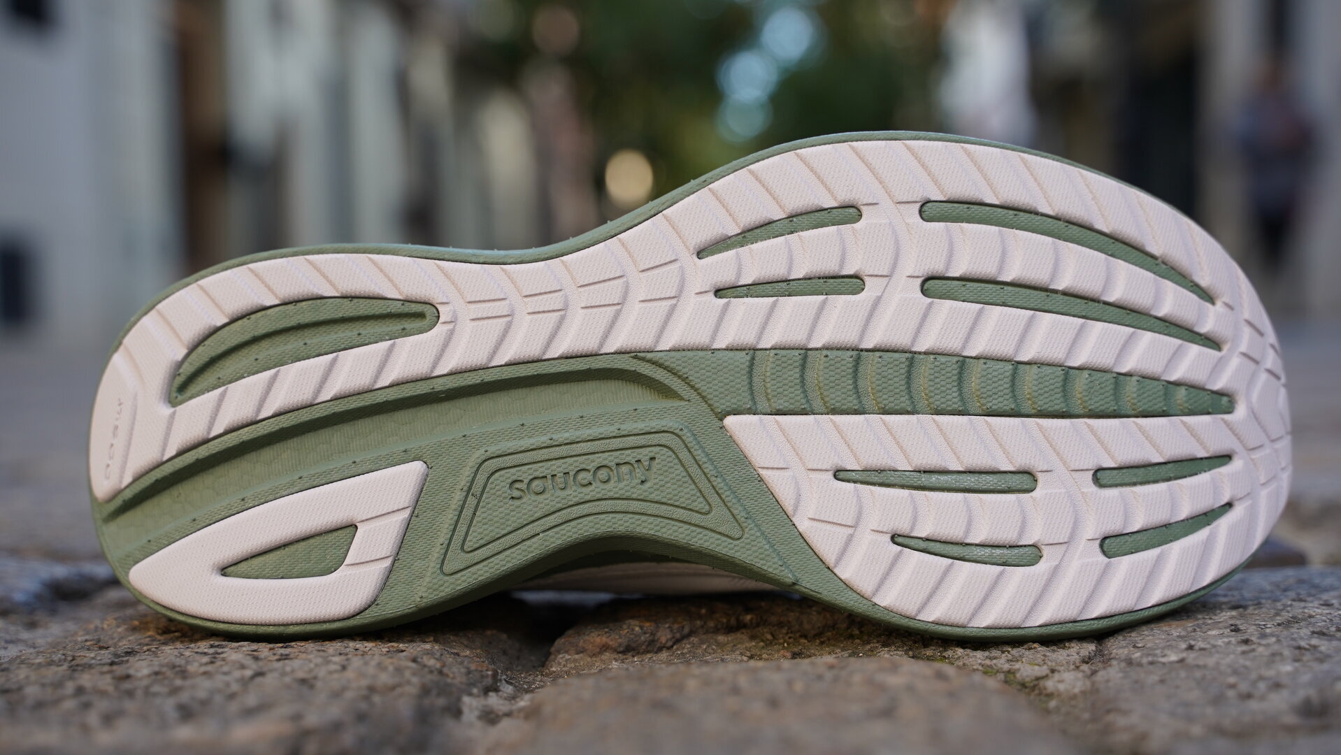 La suela y el caucho XT-900 se distribuyen de tal manera que esta se encuentre protegida y aumente su durabilidad. El diseño es también el mismo, o por lo menos muy parecido al de la Saucony Ride 17.