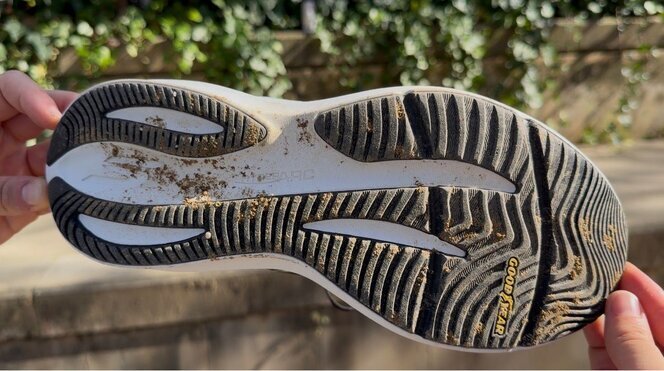 La suela utiliza caucho Goodyear, uno de los puntos fuertes del modelo, que aporta un agarre fiable y buena durabilidad. Además, su grosor permite cierta versatilidad, defendiéndose incluso en superficies de tierra o gravel ligero, ofreciendo una pisada segura más allá del asfalto.