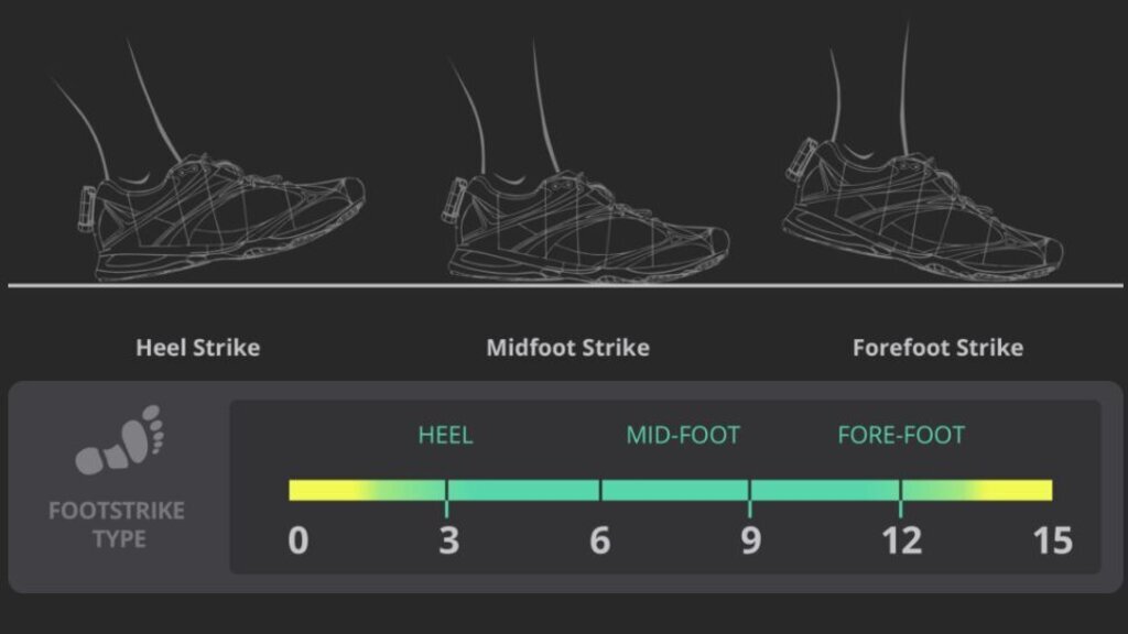 Gracias al acelerómetro incorporado en el Run Scribe podremos saber exactamente en que zona del pie impactamos contra el suelo (antepié, medio pie, talón).