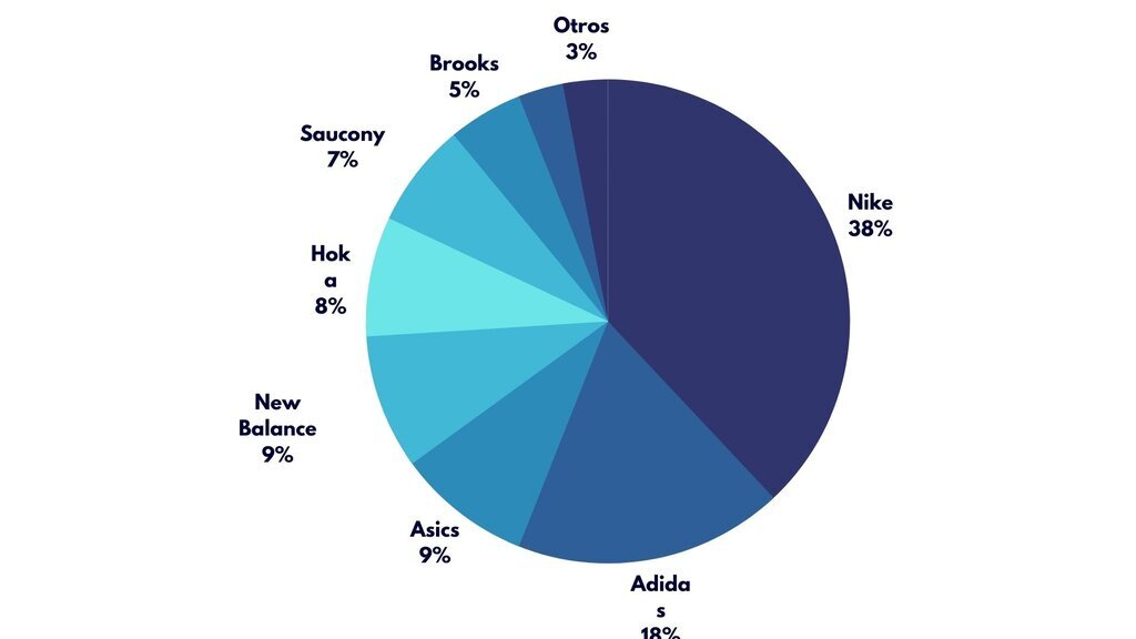 ASICS y adidas, que finalizan en segunda y tercera posición, se llevan el 12% y el 11% (respectivamente) dentro de un cajón para muchos inalcanzable y que sólo corredores dedicados o patrocinados por marcas pueden asumir.